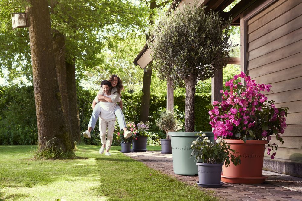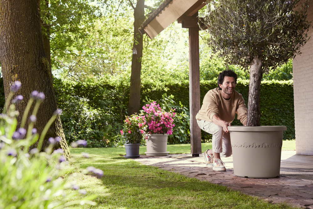 Dale protagonismo a tus plantas más bonitas con este clásico atemporal, la colección algarve de elho. Crea tu propio ambiente mediterráneo en tu jardín o balcón con estas grandes macetas decorativas de exterior. Están disponibles en atractivos colores mate con motivos decorativos florales. Gracias a las prácticas ruedas de esta maceta grande y redonda, podrás trasladar fácilmente las plantas al lugar más adecuado de tu patio y colocarlas como quieras. Una base especialmente diseñada eleva la maceta del suelo para proporcionar un drenaje y una aireación óptimos que ayuden a tus plantas a crecer para que puedas disfrutar de ellas durante más tiempo. Esta maceta de plástico también está fabricada con materiales de primera calidad, para que puedas utilizarla temporada tras temporada. Hemos fabricado esta maceta con amor, amor por la naturaleza, ya que está hecha con materiales 100 % reciclados, es 100 % reciclable y se produce con energía eólica.