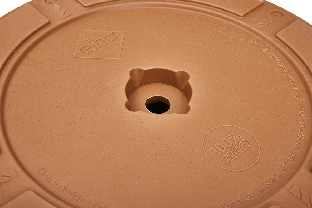 Coloca tu planta sobre un pedestal con el coupe amber. La forma de copa está muy de moda y, combinada con la forma redonda y suave de la familia del amber, atrae todas las miradas. Con múltiples tamaños y colores cálidos disponibles, combina bien con muchos tipos de plantas. Por eso es la maceta ideal para cualquier interior o jardín. ¿Quieres estabilidad garantizada? Puedes rellenar el fondo de la maceta con arena. Este espacio se puede cerrar con la tapa para mantener la arena en la maceta. Si quieres utilizar esta maceta en el exterior, no olvides perforar la marca de la parte elevada del interior de la maceta. Así te asegurarás de que el exceso de agua se drene por la arena y salga por la tapa. Ten en cuenta que una vez que hayas perforado la maceta, ya no podrás colocarla en el interior.