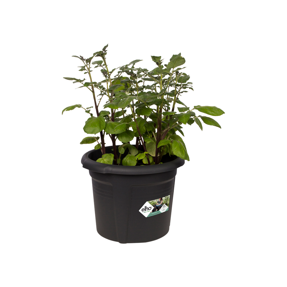 La maceta para patatas de la colección elho facilita el cultivo de sus propias patatas a pequeña escala. La maceta se compone de una maceta básica y una exterior. Simplemente plantarlas patatas de siembra en la maceta básica y las crecer levantándola. Cuando las patatas son lo suficientemente grandes, puede cosecharlas fácilmente sacando la maceta básica. Si se cuida bien, la planta continuará produciendo nuevas patatas, hasta la primera helada de otoño. Además, la maceta asegura no haya moho o enfermedades que afectan al suelo y puede seguir cultivando las patatas año tras año. La maceta para patatas tiene una maceta básica y una exterior. Todos los productos de la colección “green bsics” se hacen del plástico reciclado. El filtro UV evita que el color se decolore al dejarla al sol. La maceta es ligera y no es ningún problema si se deja caer accidentalmente, es muy resistente.
