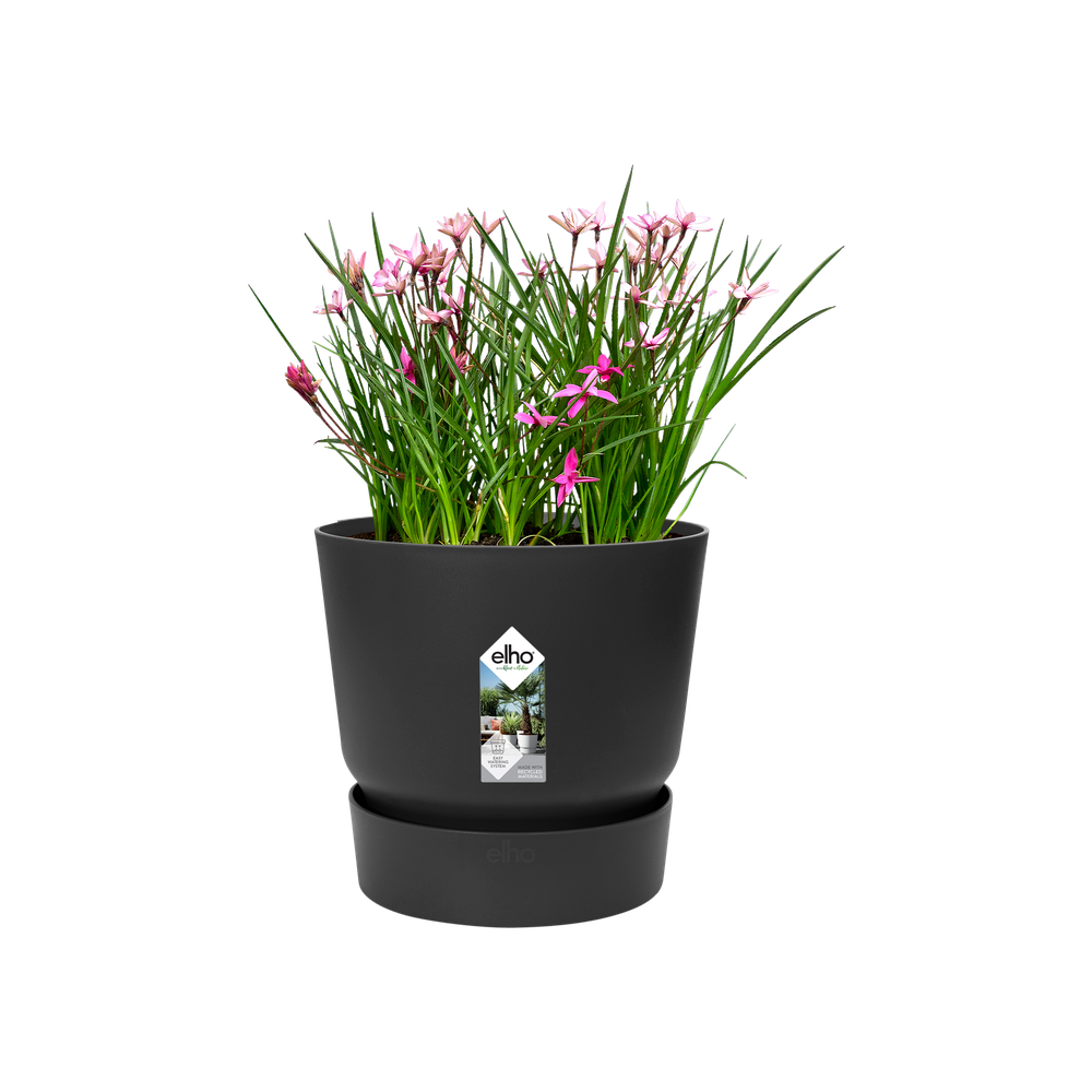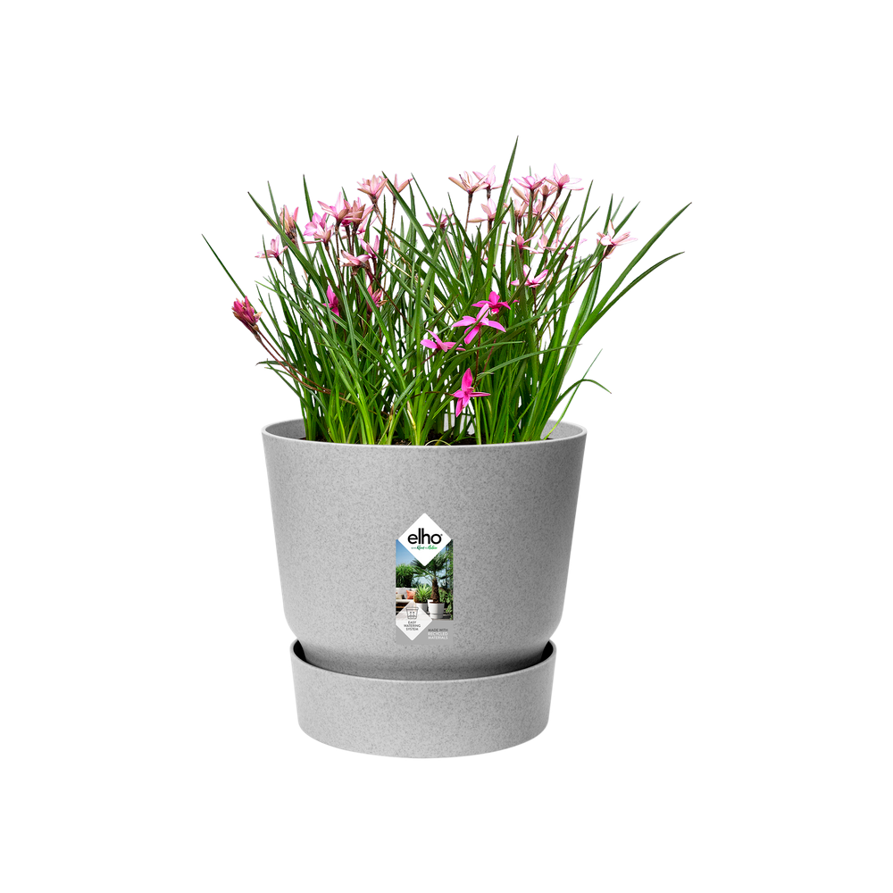 Por supuesto, el amor por las plantas significa amor por la naturaleza. Y puedes estar seguro de que estas macetas se han creado pensando en todo momento en la naturaleza. Están hechas de plástico reciclado, son totalmente reciclables y se fabrican utilizando energía eólica de nuestro propio molino de viento, que se encuentra en nuestras instalaciones (que también son el hogar de unos 2.000.000 de abejas, que no fabrican macetas, ¡pero son muy necesarias para la naturaleza!). Nos preocupamos por el planeta, la naturaleza y las personas, tal y como demuestra nuestro certificado B Corp. Este se otorga a empresas de todo el mundo que destacan en ámbitos como la transparencia y el impacto medioambiental, entre otros. Solo unas pocas empresas en los Países Bajos