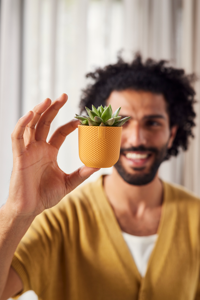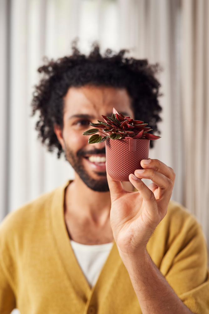 Esta pequeña maceta no solo es elegante, sino también práctica: la jazz mini es hermética y superligera, por lo que puedes llevarla a cualquier parte y cambiar tu decoración con un toque de color.