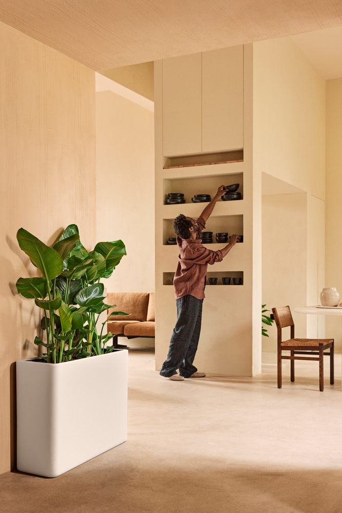 ¿Buscas la jardinera perfecta para un separador verde en tu jardín o en tu casa? Entonces el separador june brick es una opción perfecta, además con sus líneas limpias y modernas es una jardinera muy resistente. Combina esta jardinera con gramíneas o plantas de colores y disfruta de todo el verde en tu jardín o casa. Esta jardinera es fácil de mover gracias a las ruedas de la parte inferior. De este modo, podrás cambiar el interior de tu casa o jardín siempre que quieras. Gracias al fondo elevado, no tendrás que llenar toda la maceta con tierra. ¿Quieres estabilidad garantizada? Puedes rellenar el fondo de la maceta con arena. Este espacio se puede cerrar con la tapa para mantener la arena en la maceta. Si quieres utilizar esta maceta en el exterior, no olvides perforar la marca de la parte elevada del interior de la maceta. Así te asegurarás de que el exceso de agua se drene por la arena y salga por la tapa. Ten en cuenta que una vez que hayas perforado la maceta, ya no podrás colocarla en el interior.