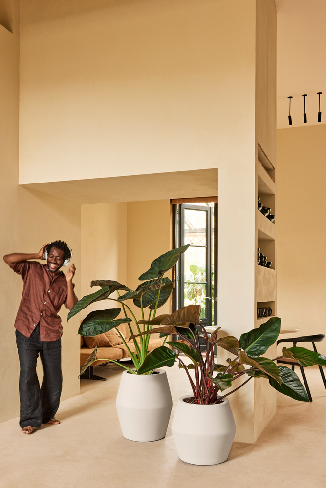 Debido a su forma de diamante, esta maceta de elho adquiere un aspecto único. Combinado con los profundos colores de la familia june, hace que el june split sea un verdadero atrapa miradas en tu interior, jardín o terraza. Combina esta maceta con plantas y árboles pequeños o medianos. Gracias al fondo elevado, no es necesario llenar toda la maceta con tierra. Si deseas usar este macetero en exteriores, no olvides perforar el agujero en el interior de la maceta. Esto garantiza que el exceso de agua se drene adecuadamente. Ten en cuenta que una vez que la hayas perforado, ya no podrás colocar la maceta en el interior.