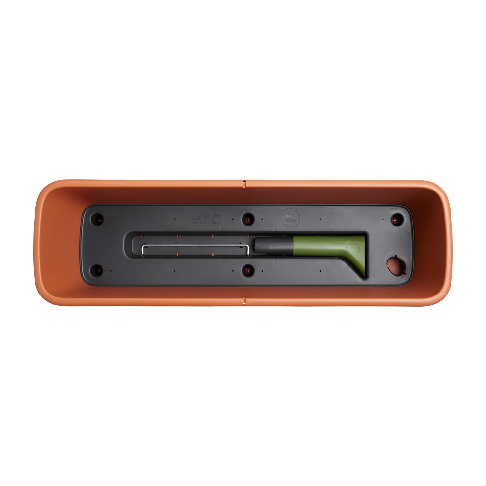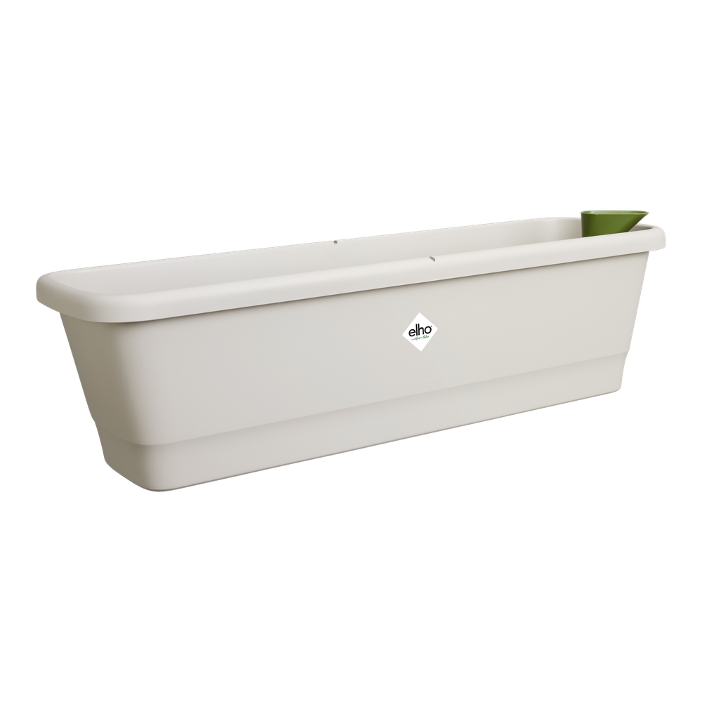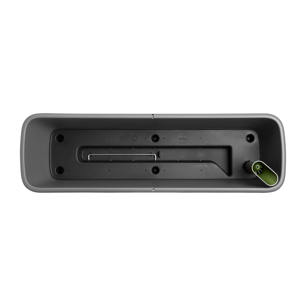 Las nuevas jardineras de balcón noa son bonitas por fuera y funcionales por dentro. Esta jardinera de balcón tiene un sistema de reserva de agua integrado con un indicador de nivel, para que puedas comprobar cuánta agua hay de un vistazo. El depósito de reserva es fácil de llenar gracias a su práctico embudo. También tiene un tapón extraíble para evacuar el exceso de agua. Si quieres utilizar esta jardinera en un lugar donde le llegue el agua de lluvia, como debajo de un porche, puedes dejar el tapón puesto. Todas las piezas están incluidas y solo hay que insertarlas en la jardinera. Ahora solo tienes que pensar cuál es el lugar ideal para tu nueva jardinera de balcón. Si quieres colgar la jardinera, al instalarla asegúrate de que está nivelada para que el indicador de agua pueda funcionar correctamente. Póntelo fácil: utiliza nuestros ganchos para balcón (juego disponible por separado) para que tu maceta quede perfectamente segura. La jardinera de balcón noa está hecha con plástico reciclado. Es ligera pero lo bastante resistente como para aguantar algún que otro golpe.