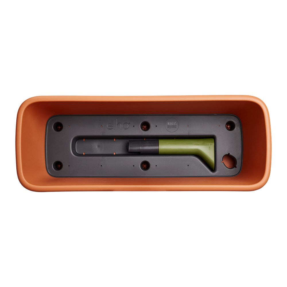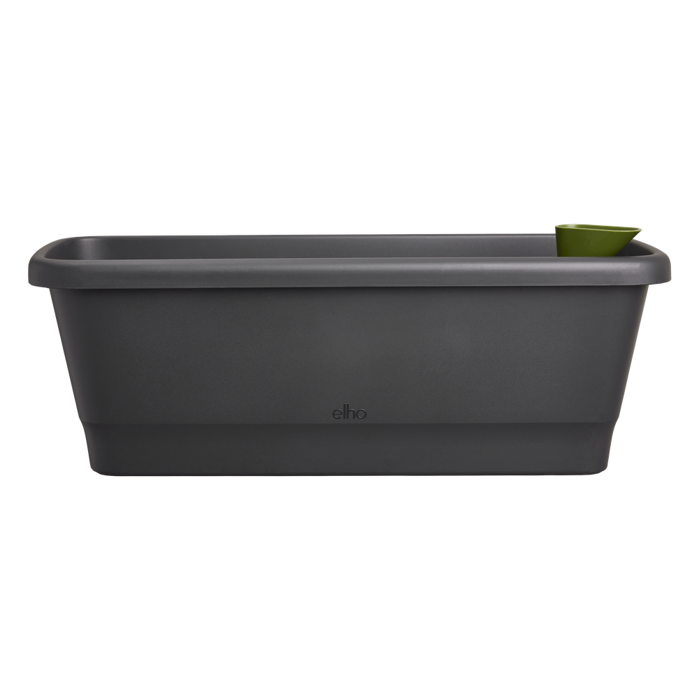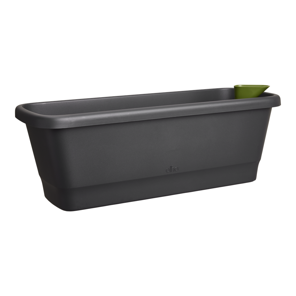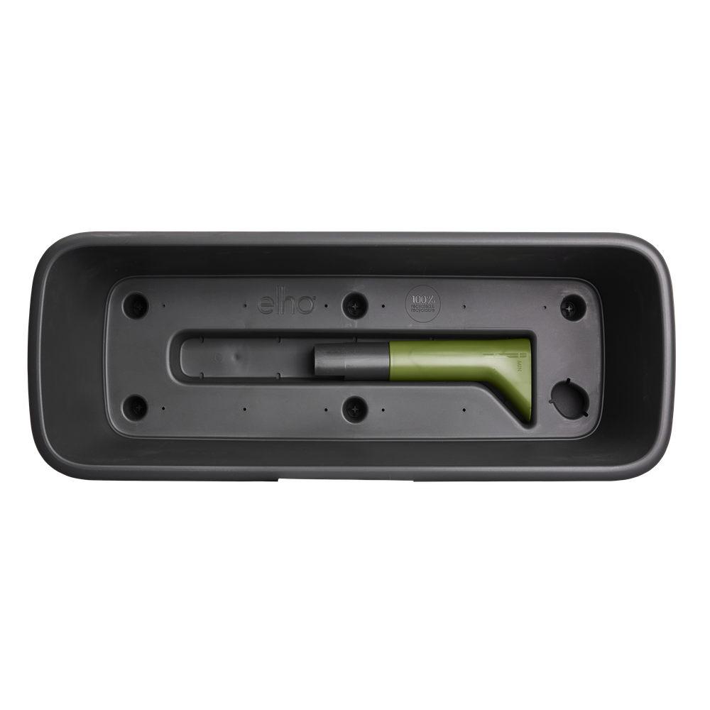 Las nuevas jardineras de balcón noa son bonitas por fuera y funcionales por dentro. Esta jardinera de balcón tiene un sistema de reserva de agua integrado con un indicador de nivel, para que puedas comprobar cuánta agua hay de un vistazo. El depósito de reserva es fácil de llenar gracias a su práctico embudo. También tiene un tapón extraíble para evacuar el exceso de agua. Si quieres utilizar esta jardinera en un lugar donde le llegue el agua de lluvia, como debajo de un porche, puedes dejar el tapón puesto. Todas las piezas están incluidas y solo hay que insertarlas en la jardinera. Ahora solo tienes que pensar cuál es el lugar ideal para tu nueva jardinera de balcón. Si quieres colgar la jardinera, al instalarla asegúrate de que está nivelada para que el indicador de agua pueda funcionar correctamente. Póntelo fácil: utiliza nuestros ganchos para balcón (juego disponible por separado) para que tu maceta quede perfectamente segura. La jardinera de balcón noa está hecha con plástico reciclado. Es ligera pero lo bastante resistente como para aguantar algún que otro golpe.