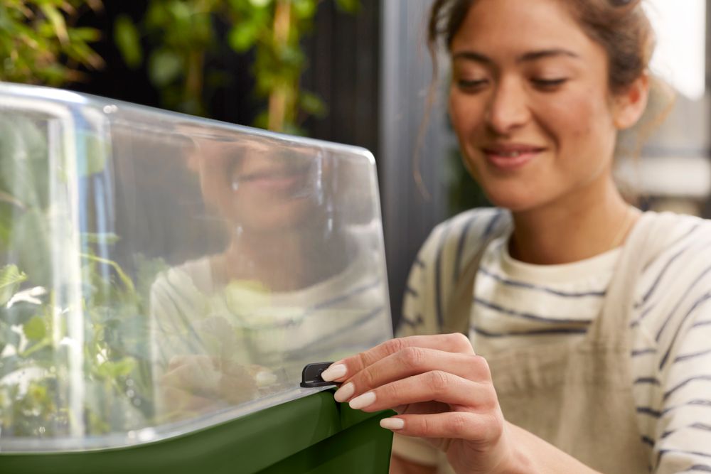 La casa de cultivo garantiza que tus semillas y plantas estén protegidas de los pájaros, la lluvia y la luz solar directa. Los paneles de ventilación deslizantes ayudan a regular la temperatura y el suministro de aire para crear unas condiciones de cultivo óptimas.