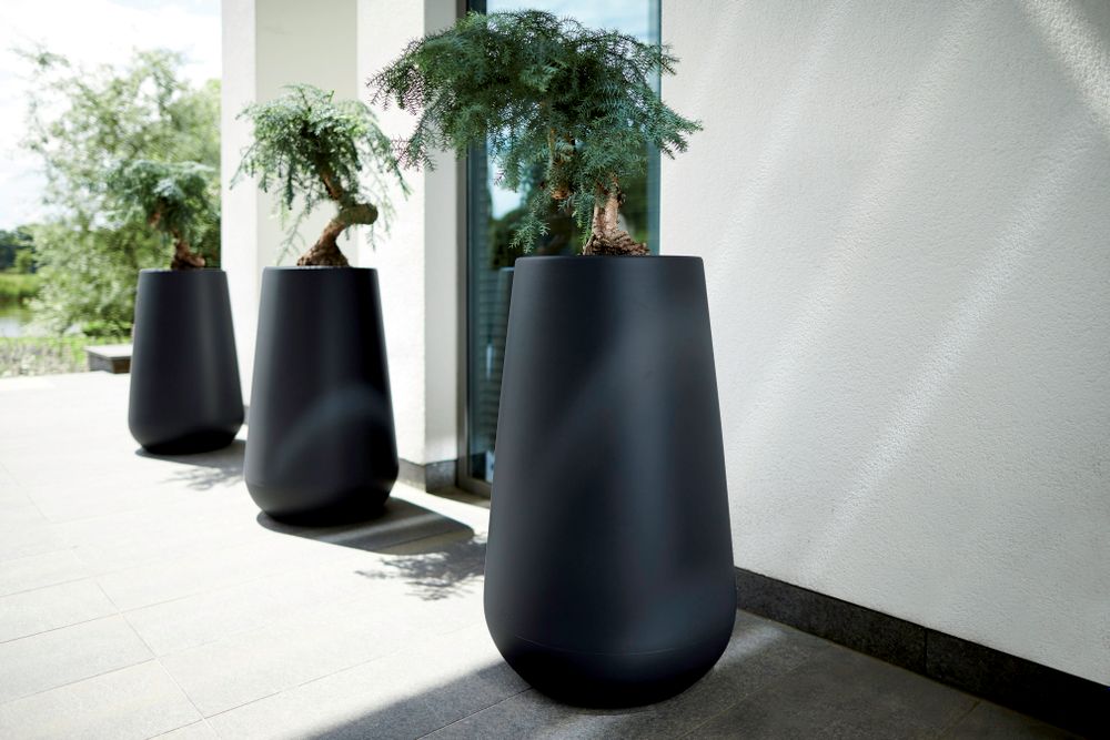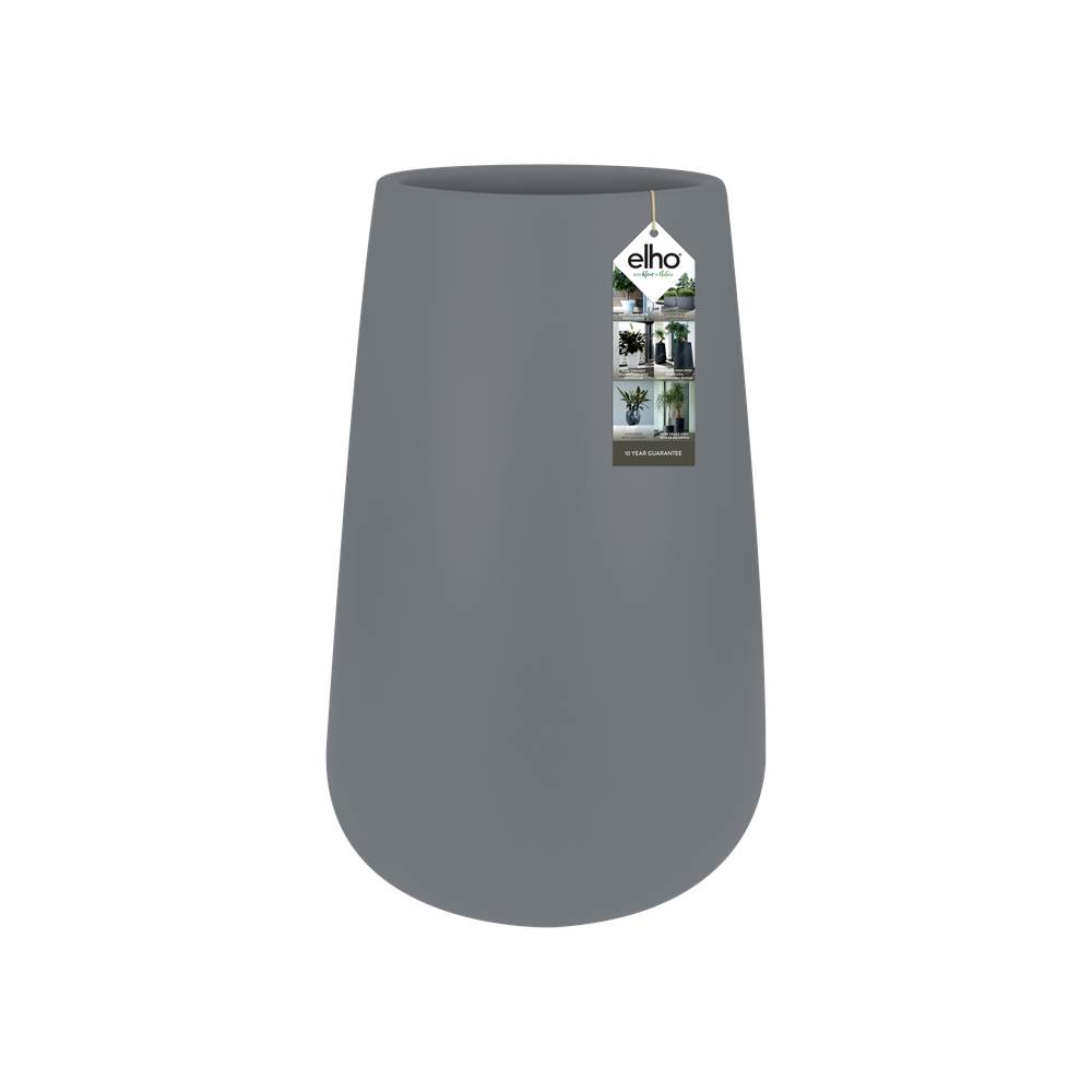 La hermosa pure cone high tiene una presencia fascinante en el salón, el jardín o el balcón. Esta maceta, caracterizada por su diseño redondo, se adapta a cualquier entorno. Para logar un efecto único puedes crear combinaciones con los diversos formatos de la colección cone. La maceta es también una división perfecta entre espacios interiores o de la terraza. Es idónea para plantas y árboles de tamaño pequeño y mediano. Posee una base elevada que facilita la siembra de las plantas. Fabricada con plástico de alta calidad, tolera la exposición al sol directo sin que se atenúe su color. Fácil de trasladar por su poco peso. Además es fácil de limpiar, resiste a la intemperie y a temperaturas de hasta -40 grados. No hay problema si se vuelca o se cae ya que la maceta está hecho a prueba de impactos. Se decidi di collocare la fioriera all'aperto, non dimenticare di bucare con il trapano il foro di drenaggio predisposto all'interno del vaso, per far defluire l'acqua in eccesso. Abbina questa fioriera elegante agli altri formati della collezione elho pure cone e goditeli per molti anni in casa e all'esterno.