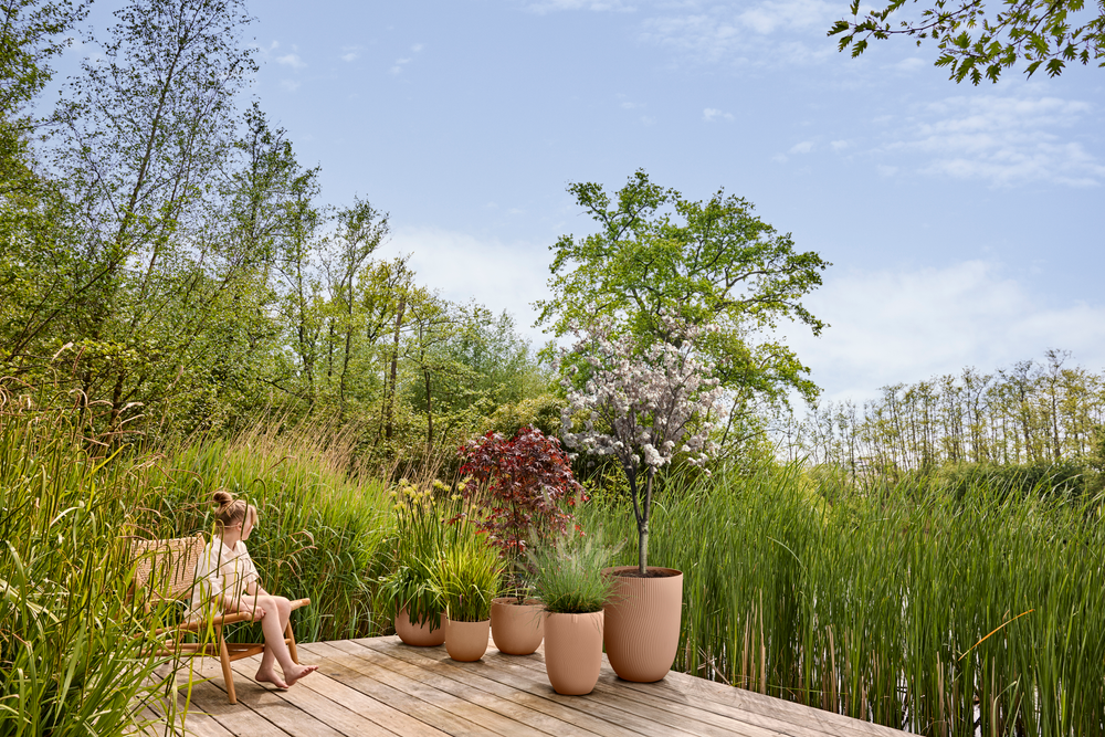 La elho sereh high es más que una maceta: es una pieza de diseño. Inspirada en la hierba ondeante, su textura y acabado únicos aportan una sensación delicada y orgánica a cualquier espacio interior o exterior. Fabricada con un material duradero y resistente a la decoloración que puede soportar los elementos, esta llamativa maceta mantendrá su belleza temporada tras temporada. ¿Tienes pensado usar esta maceta en interiores? ¡Solo tienes que introducir el tapón verde en el tubo de drenaje y listo!