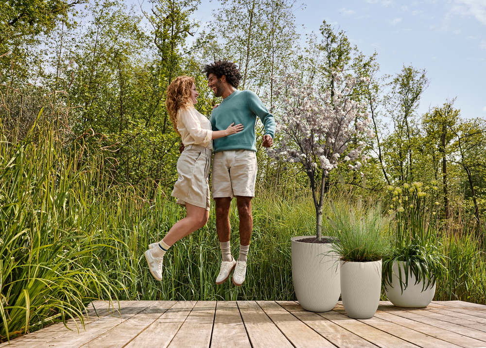 En elho, nuestra misión es hacer que el mundo sea más verde. Por eso la maceta elho sereh flower está hecha de plástico 100 % reciclado, producido con energía eólica y totalmente reciclable: una elección respetuosa para ti y el planeta.