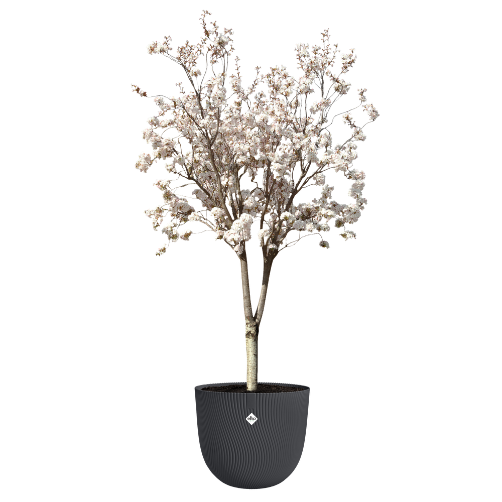 Esta maceta redonda está hecha de plástico 100% reciclado. Puede soportar algunos golpes, es resistente a las heladas y conserva el color. Así que puedes disfrutar de más vegetación en tu jardín o terraza en cada temporada.