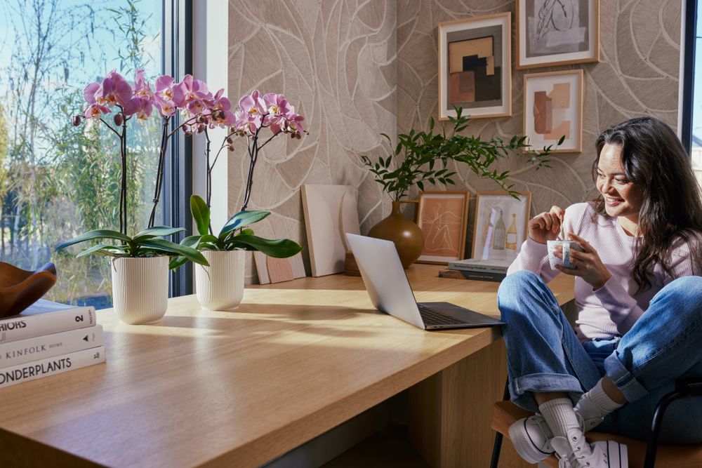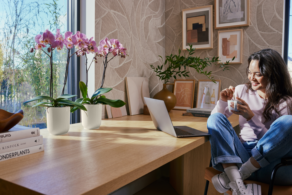 La orquídea es una planta elegante con preciosas flores que aportarán color y vida a tu hogar. ¡Con nuestra maceta vibes fold orchid podrás presumir de orquídeas! Esta maceta tiene un moderno diseño estriado que no solo es bonito, sino que también crea las mejores condiciones para tu orquídea. Hemos colaborado con un especialista en orquídeas para diseñar esta maceta alta específica para orquídeas, así que, ¡tiene la aprobación de los expertos! Las orquídeas necesitan muy poca agua, por lo que la base elevada de la maceta elho permite drenar cualquier exceso de agua. También garantiza una buena circulación del aire y proporciona la cantidad justa de agua alrededor de las raíces para que tu orquídea esté siempre contenta. Creada especialmente para el cuidado de las orquídeas, esta maceta elho te permitirá disfrutar de la belleza y el color de tu planta durante más tiempo. Esta maceta también es estanca, por lo que puedes colocarla sobre el suelo o una mesa de madera sin riesgo de que caiga agua. Se trata de un producto de máxima calidad del que podrás disfrutar durante muchos años. Hemos fabricado esta maceta con amor, amor por la naturaleza, ya que está hecha con materiales 100 % reciclados, es 100 % reciclable y se produce con energía eólica.