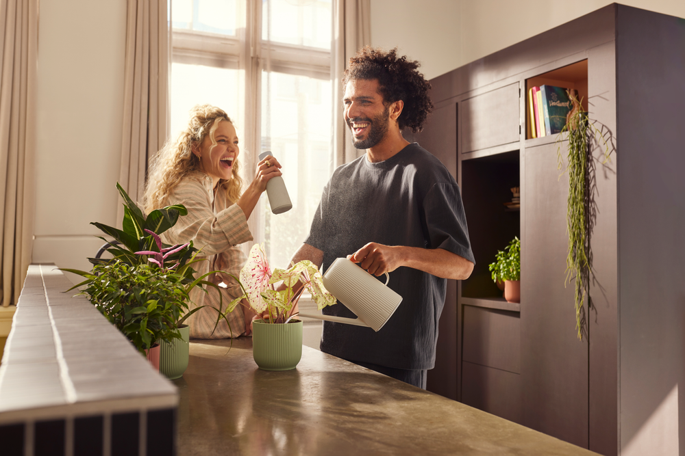 Igual que el resto de productos de la vibes collection, esta bonita regadera tiene una forma elegante y colores suaves, para combinar sin esfuerzo con cualquier estilo y decoración. ¿Quieres cuidar aún mejor tus plantas? Combínala con el vibes plant mister a juego para dar a tus plantas el cuidado que se merecen y añadir un toque de estilo a tu espacio interior.