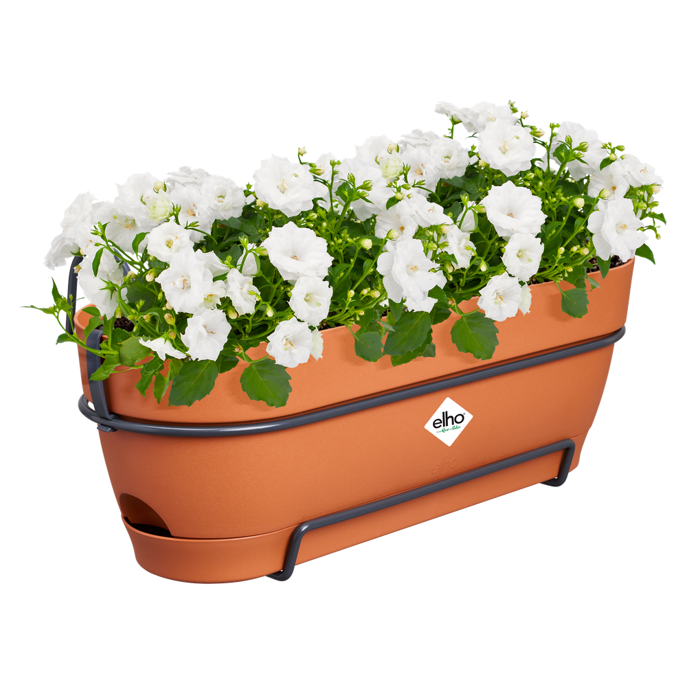 ¿Te gustaría tener más verde en tu balcón? Entonces vibia campana trough es justo lo que necesitas. Con este producto convertir un balcón vacío en un oasis verde es cosa de niños. Gracias al depósito de agua integrado, podrás disfrutar de todo el verde que te rodea durante más tiempo: el exceso de agua se drena en el depósito para poder utilizarlo en los días más secos. Esta maceta decorativa encarna nuestro amor por la naturaleza. Fabricada con plástico 100 % reciclado, producida con energía eólica y 100 % reciclable.