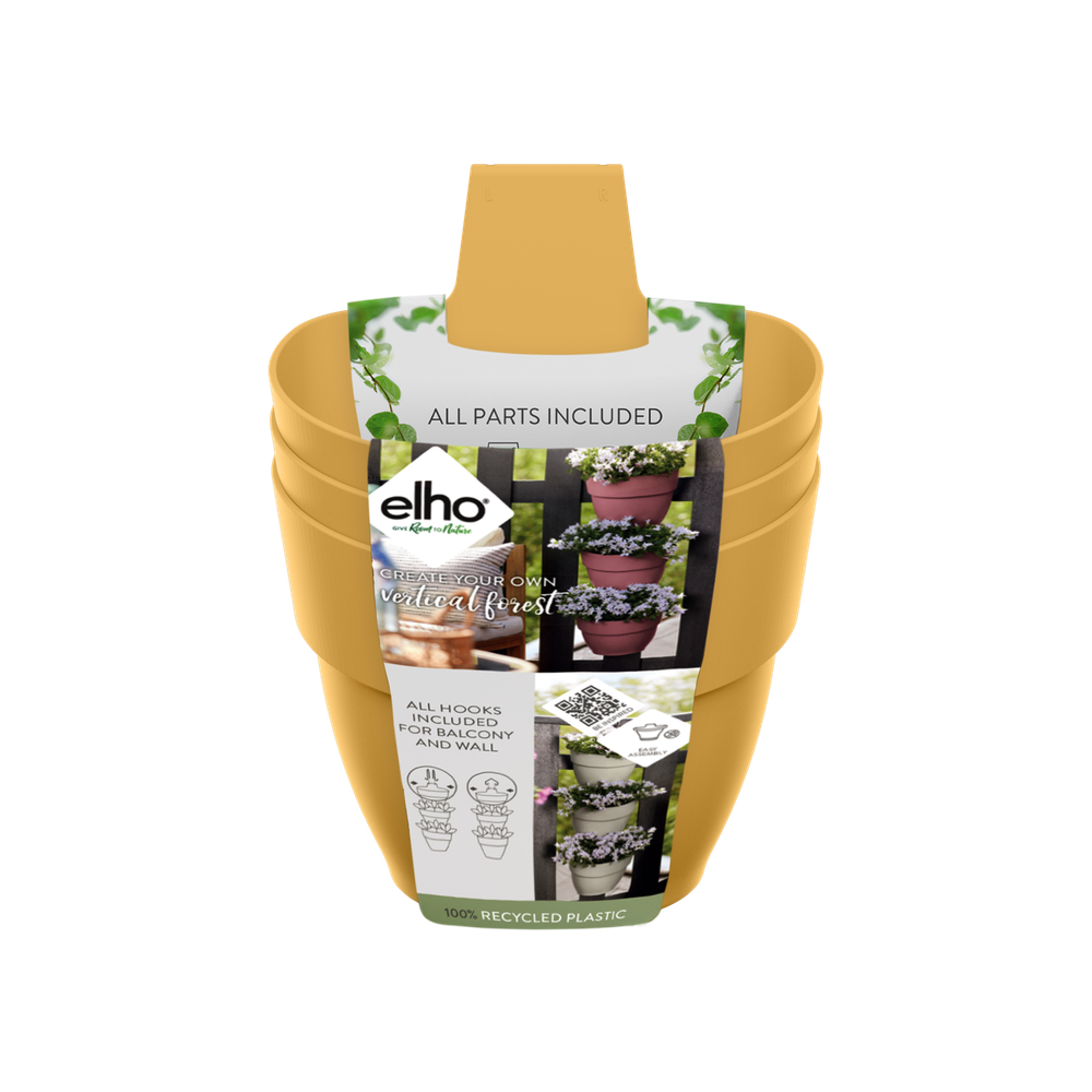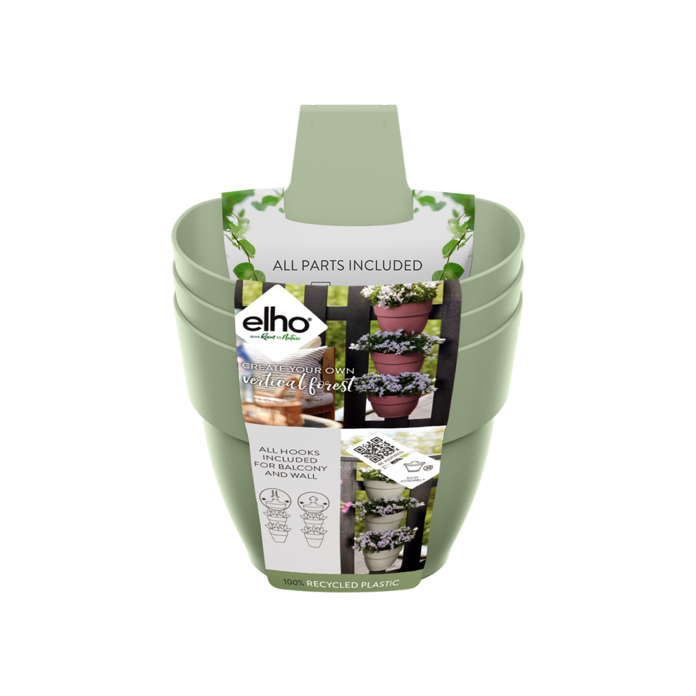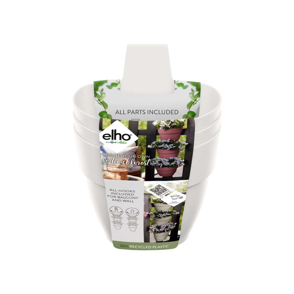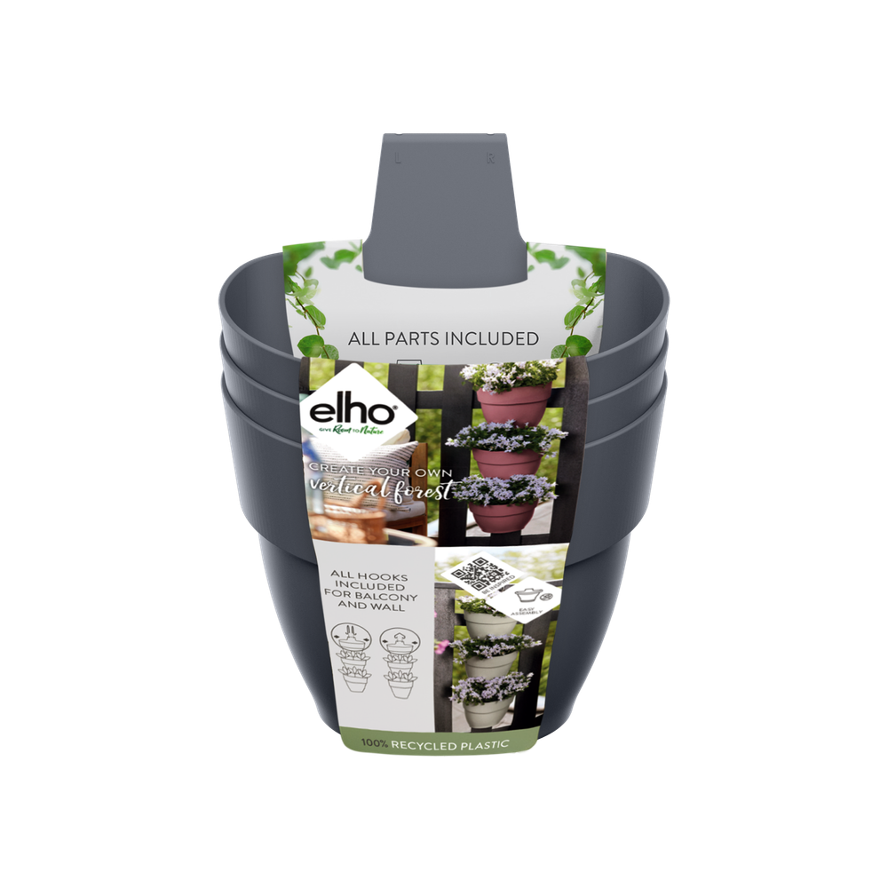 Si tu terraza o balcón no es lo suficientemente grande o verde, sé creativo y amplia en vertical. Gracias a las tres macetas, la jardinería vertical vibia campana puede albergar muchas de tus plantas favoritas. Puedes colgarla en la pared o en la barandilla del balcón, porque viene con dos ganchos. Así puedes convertir fácilmente una pared blanca en un oasis verde o alegrar tu balcón. Gracias al tubo de drenaje, podrás disfrutar más tiempo de la vegetación que te rodea, ya que permite evacuar el exceso de agua. Puedes estar tranquilo: esta maceta está hecha con amor a la naturaleza. Está fabricada con plástico 100 % reciclado, producido con energía eólica de nuestros propios aerogeneradores y además es totalmente reciclable.