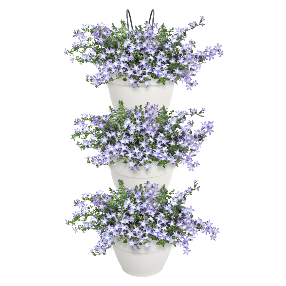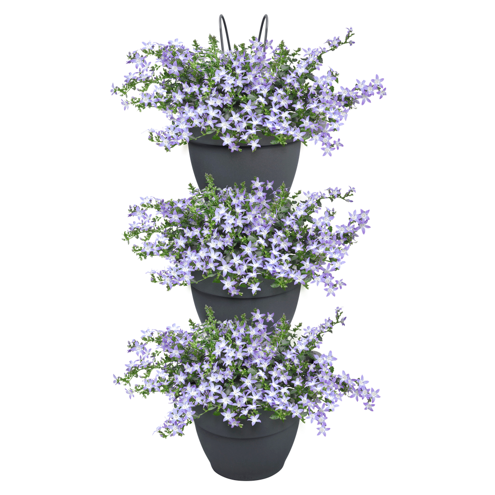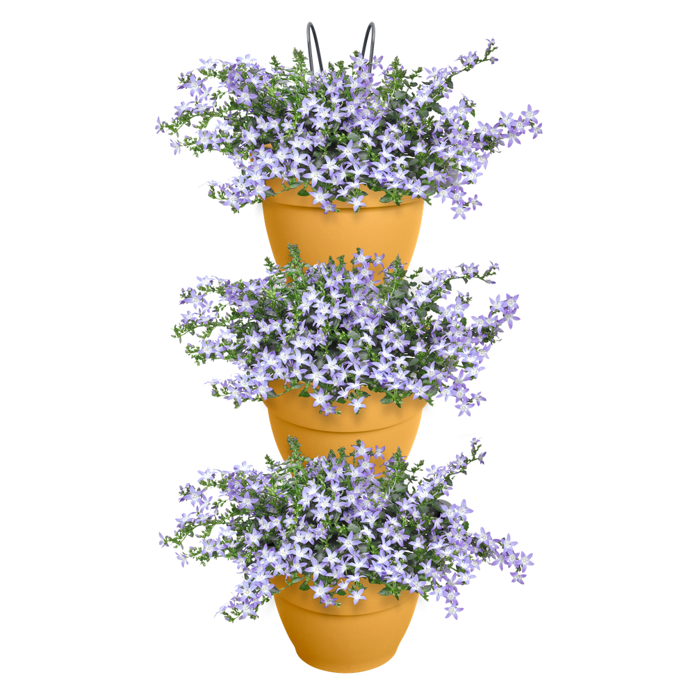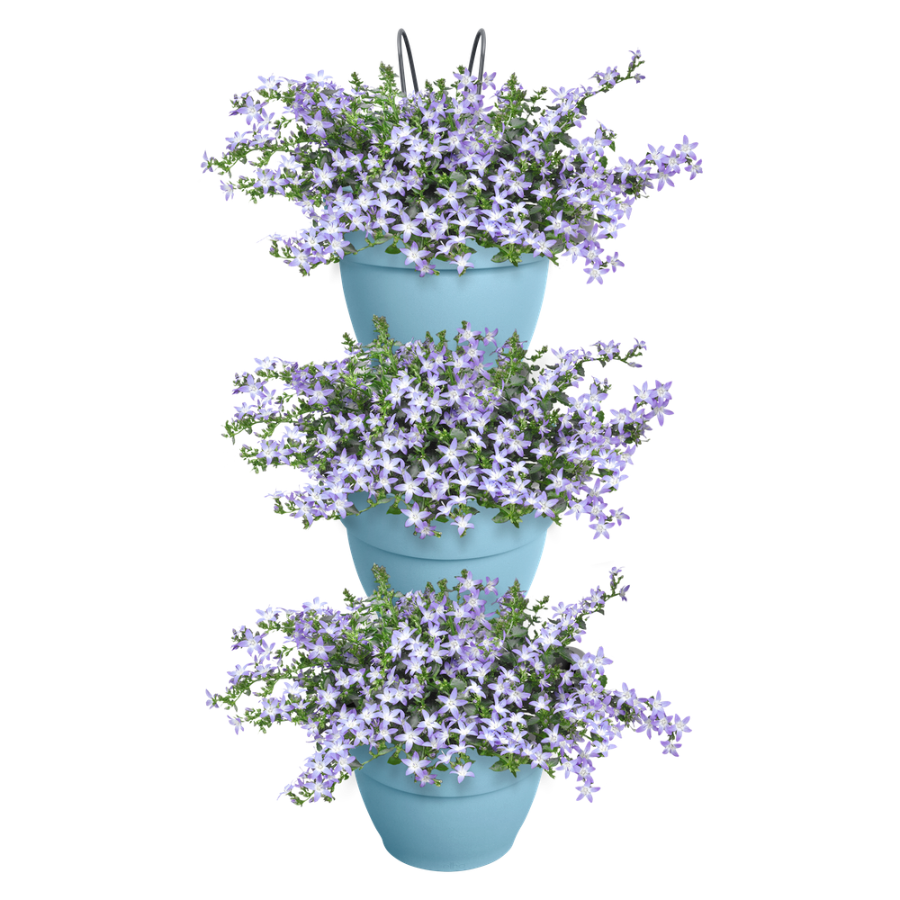 Si tu terraza o balcón no es lo suficientemente grande o verde, sé creativo y amplia en vertical. Gracias a las tres macetas, la jardinería vertical vibia campana puede albergar muchas de tus plantas favoritas. Puedes colgarla en la pared o en la barandilla del balcón, porque viene con dos ganchos. Así puedes convertir fácilmente una pared blanca en un oasis verde o alegrar tu balcón. Gracias al tubo de drenaje, podrás disfrutar más tiempo de la vegetación que te rodea, ya que permite evacuar el exceso de agua. Puedes estar tranquilo: esta maceta está hecha con amor a la naturaleza. Está fabricada con plástico 100 % reciclado, producido con energía eólica de nuestros propios aerogeneradores y además es totalmente reciclable.