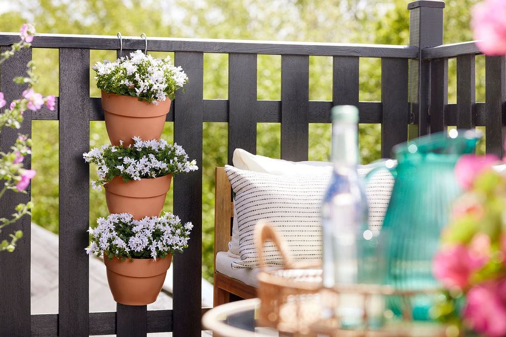 Si cuelgas una jardinería vertical vibia campana en el balcón o en la pared, siempre colgará de forma estable, agradable y recta debido a la parte posterior plana. Puedes usarlas estas macetas en casi cualquier balcón, ya que se adaptan a barandillas de hasta 6,5 cm de ancho.